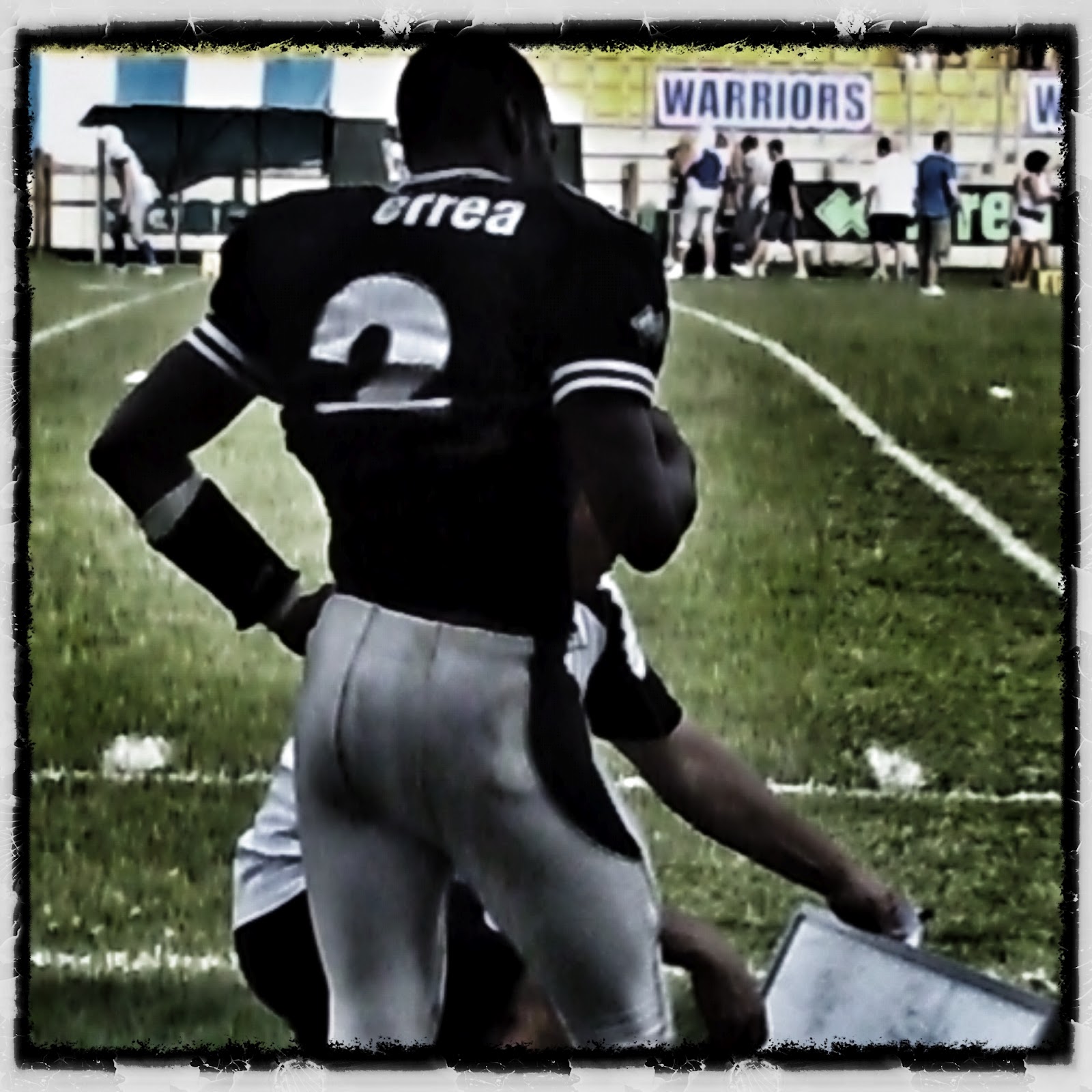Supremazia legata (anche) all’impresa da manuale della maglia numero 2, che con una, due, tre, quattro azioni, ha regalato al pubblico (e alla squadra) l’emozione di altrettanti magici touch-down (e solo perché il quinto – !!! – è stato annullato dall’arbitro), sulle note di Thunderstruck degli ACDC.