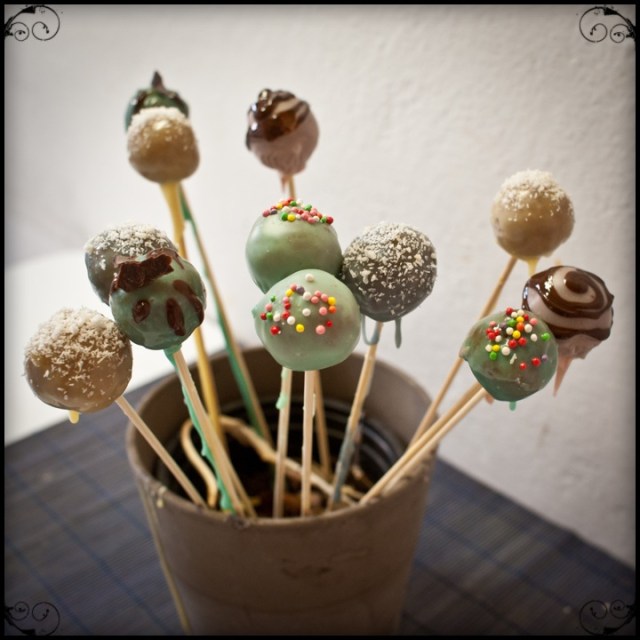 Sono delle palline di torta ricoperte di cioccolato fuso o glassa e infilzate in un bastoncino di legno, così quando busseranno alla vostra porta potrete uscire trionfanti con un cesto pieno di questi dolcetti e sperare che l’orda di ragazzini non abbia la meglio su di voi.
