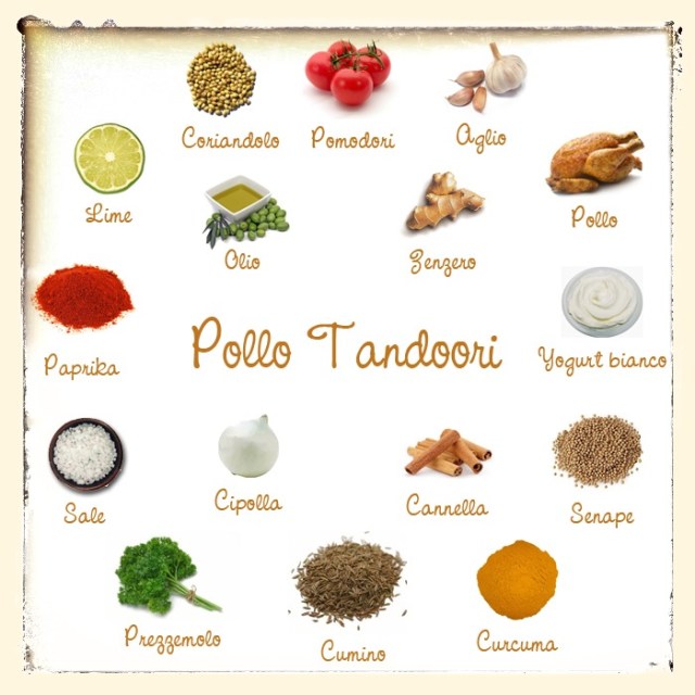 Prendiamo i nostri petti di pollo (la regia mi dice che potete usare anche le cosce, se le preferite), spelateli se hanno la pelle e marinateli nel succo del lime o limone per 10 minuti. Nel frattempo preparate la marinata mischiando per bene tutte le spezie indicate poi aggiungetele allo yogurt naturale. Togliete il pollo dal succo di lime e immergetelo nella marinata e yogurt; fate in modo che la carne sia completamente ricoperta di crema, coprite con stagnola o affini e poi lasciate in frigo per qualche ora…